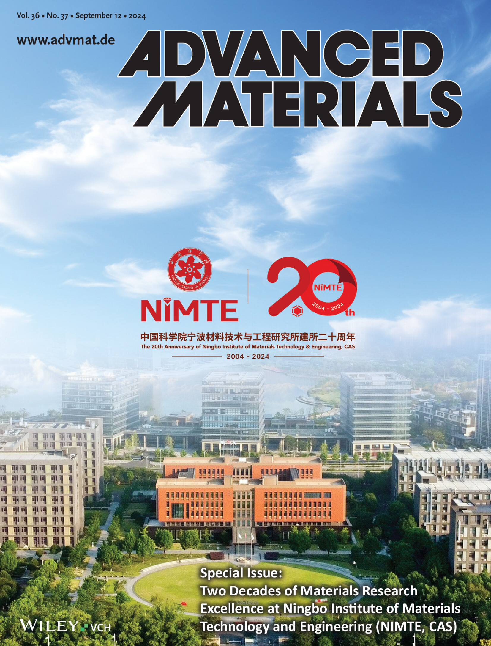 To commemorate the 20th anniversary of the Ningbo Institute of Materials Technology and Engineering (NIMTE), Chinese Academy of Sciences (CAS), this special issue features NIMTE's state-of-the-art interdisciplinary research at the frontiers of materials science and engineering. We established an academic committee with Prof. Qunji Xue, a Member of the Chinese Academy of Engineering (CAE), as the advisor. Prof. Liping Wang, the president of NIMTE, Prof. Tao Chen, and Prof. Zhiyi Lu as guest editors are responsible for the issue. The special issue showcases a collection of Reviews reflecting the remarkable contributions of NIMTE faculty members, covering a wide range of hot topics in materials science and their highly important applications.