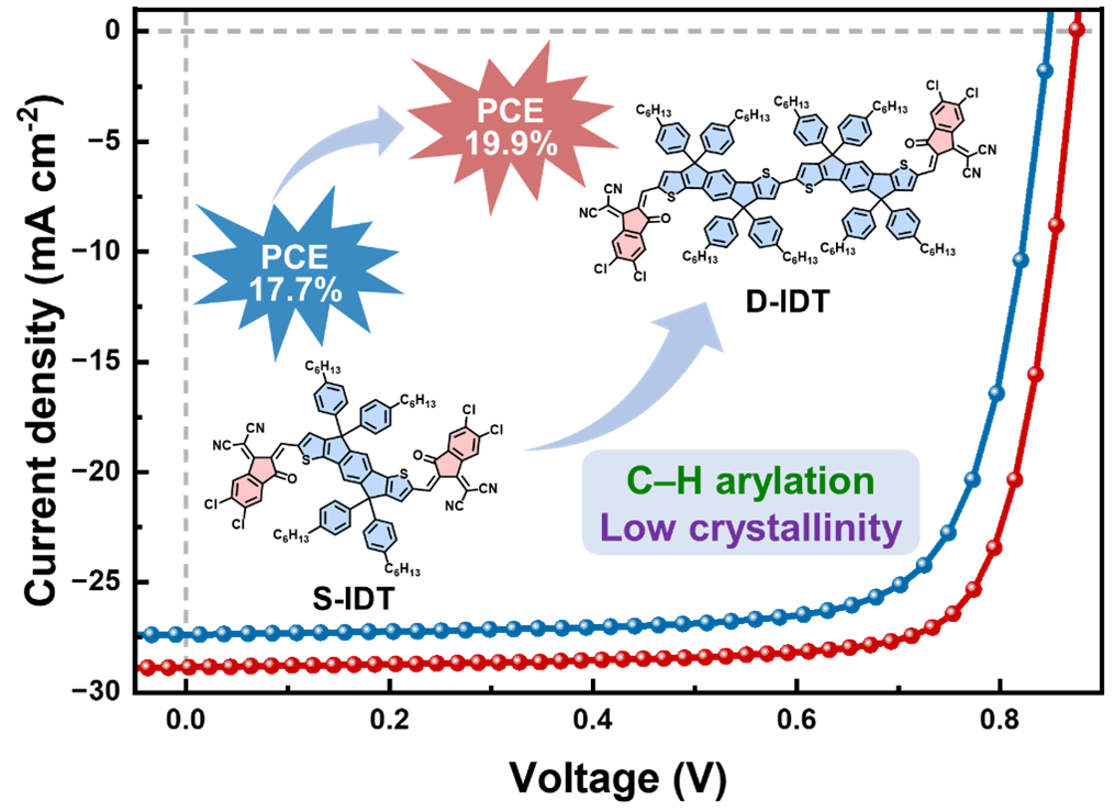 A research group led by Prof. GE Ziyi at the Ningbo Institute of Materials Technology and Engineering (NIMTE) of the Chinese Academy of Sciences (CAS), has developed a low-crystallinity guest acceptor D-IDT via tin-free direct C–H activation as a third component of the binary organic solar cells (OSCs), achieving a highly stable OSC with the power conversion efficiency (PCE) up to 19.92 percent.