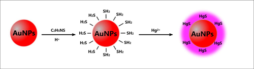Fig. 1 A schematic mechanism of Au NPs rapidly sensing of Hg2+ in aqueous solutions |