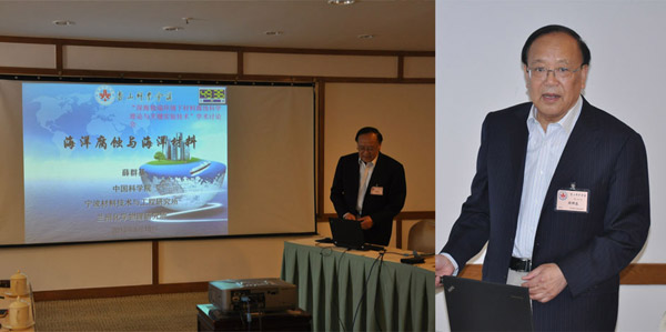 Prof. Xue Qunji, academician of the Chinese Academy of Engineering, director of science and technology from NIMTE, were invited to attend the conference and made the keynote review report entitled marine corrosion and marine materials. During the conference, Prof. Xue Qunji as executive Co-chairs chaired the symposium together with Prof. Weng Yuqing from Chinese Society for Metals, Prof. Hou Baorong from the Institute of Oceanology under the Chinese Academy of Sciences, Prof. Ke Wei from the Institute of Metal Research under the Chinese Academy of Sciences, and Prof. Yin Yansheng from Shanghai Maritime University. Researchers of NIMTE, Prof. Chen Jianmin, Prof. Wu Xuedong, Prof Song Zhenlun and Dr. Zeng Zhixiang, were invited by the XSSC program committees to share their opinions on the theme. Prof. Chen Jianmin, Director of the Surface Engineering Division in NIMTE made the invited report entitled Key Scientific Issues of the Deep-sea Exploration and the Demands for Special Equipment and Materials. Prof Wu Xedong made the invited report entitled Application of Sol-Gel Self-assembly Coatings on Marine Materials Protection.